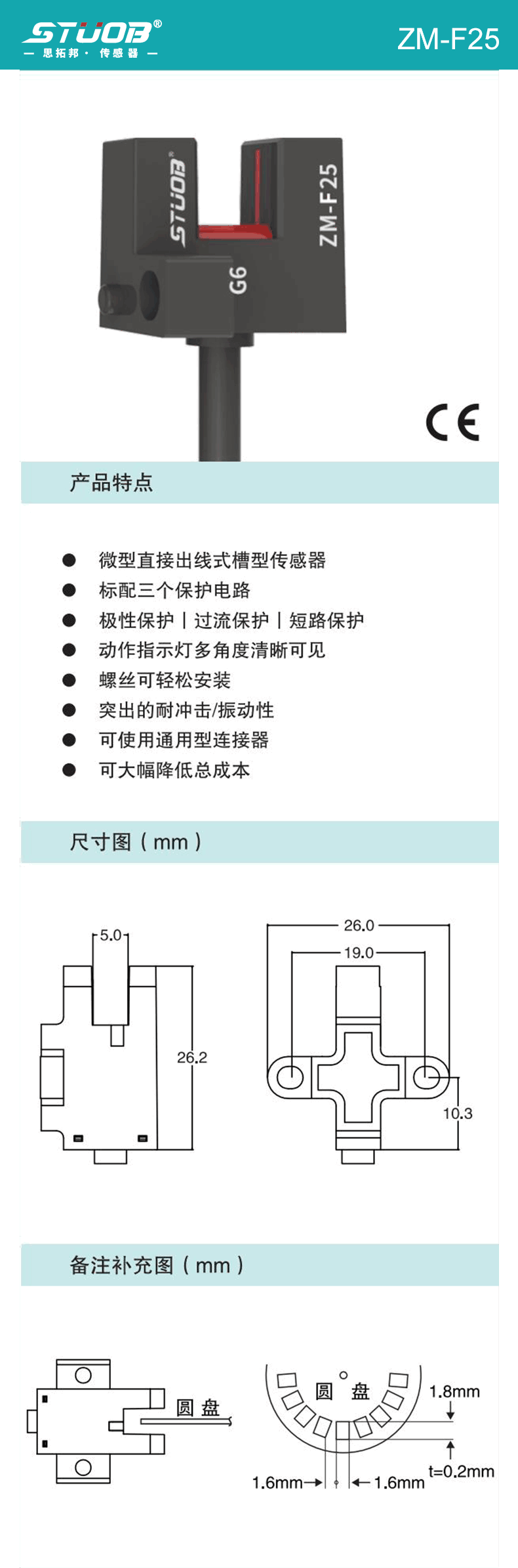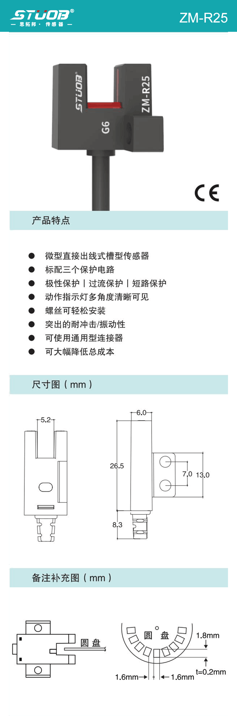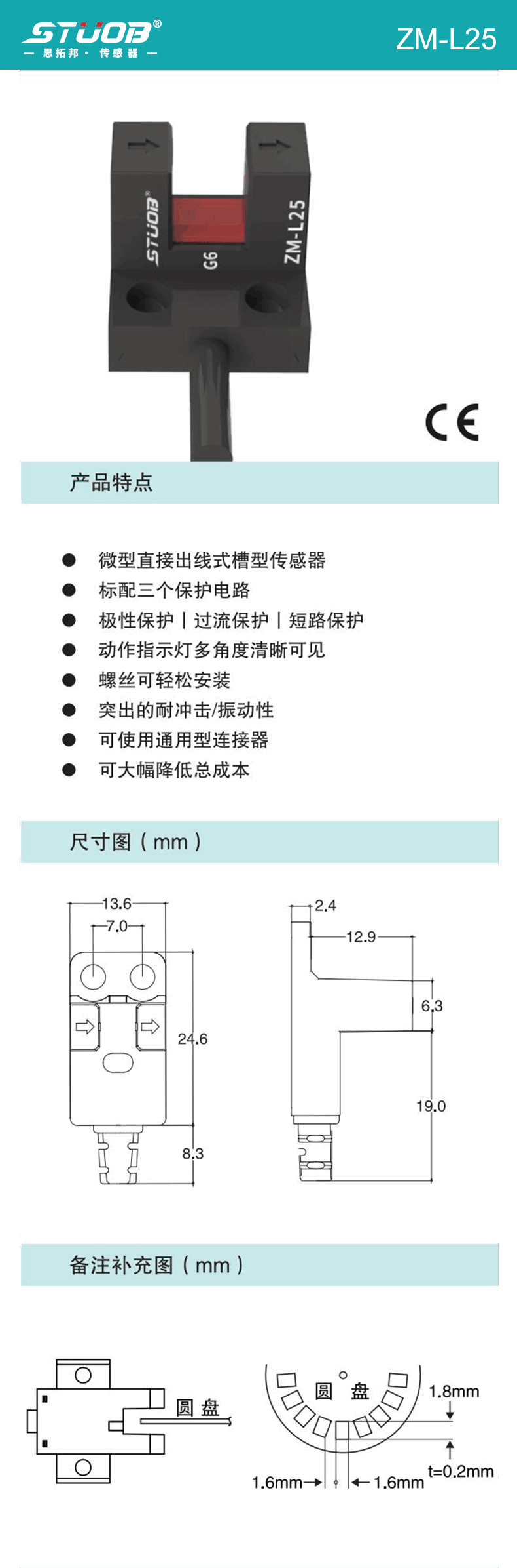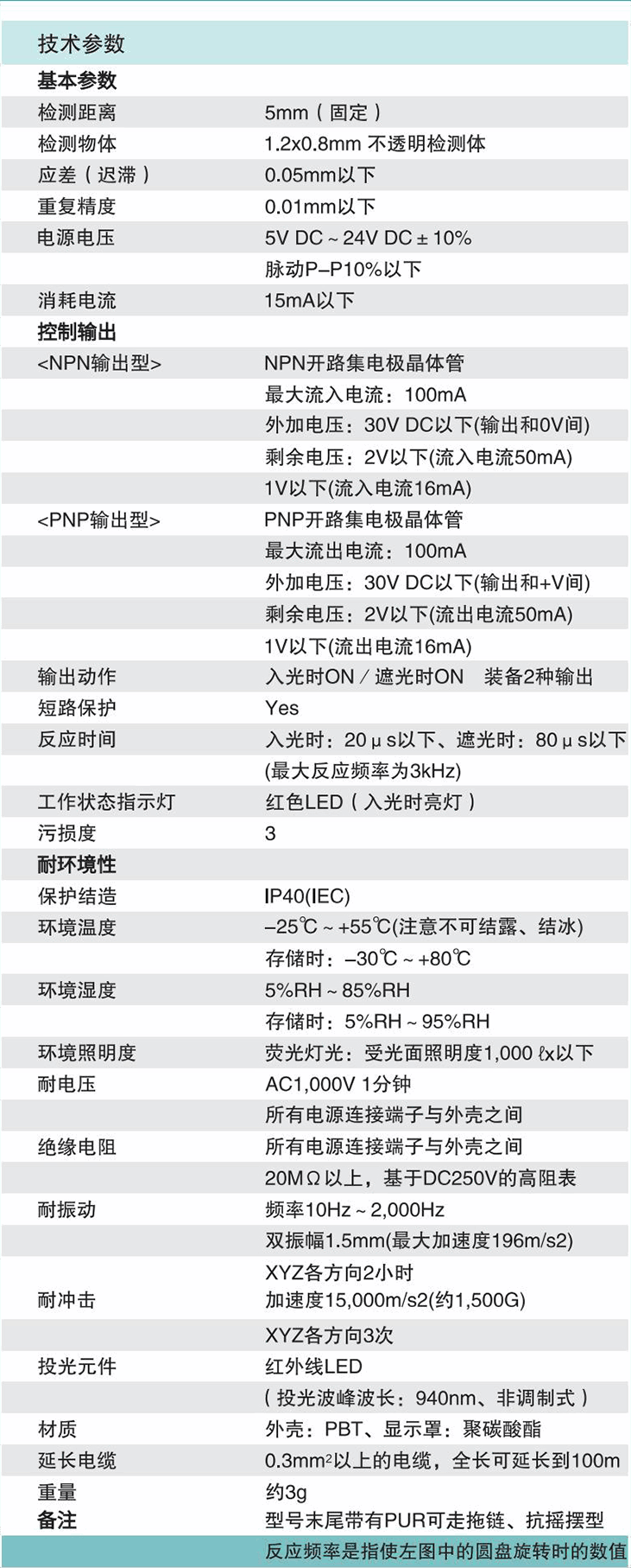 1:微型直接出線式槽型傳感器