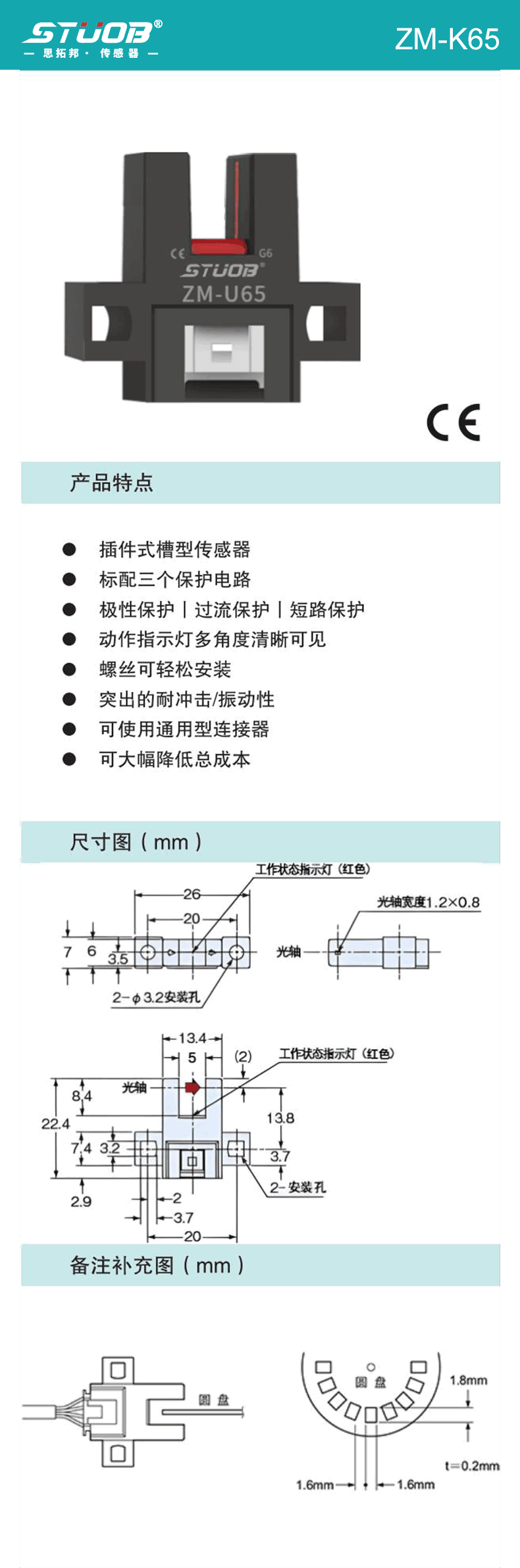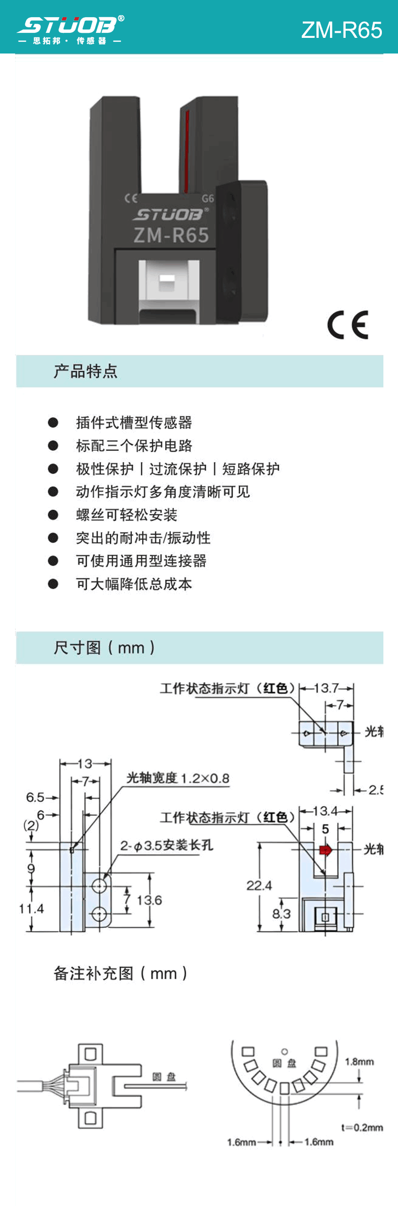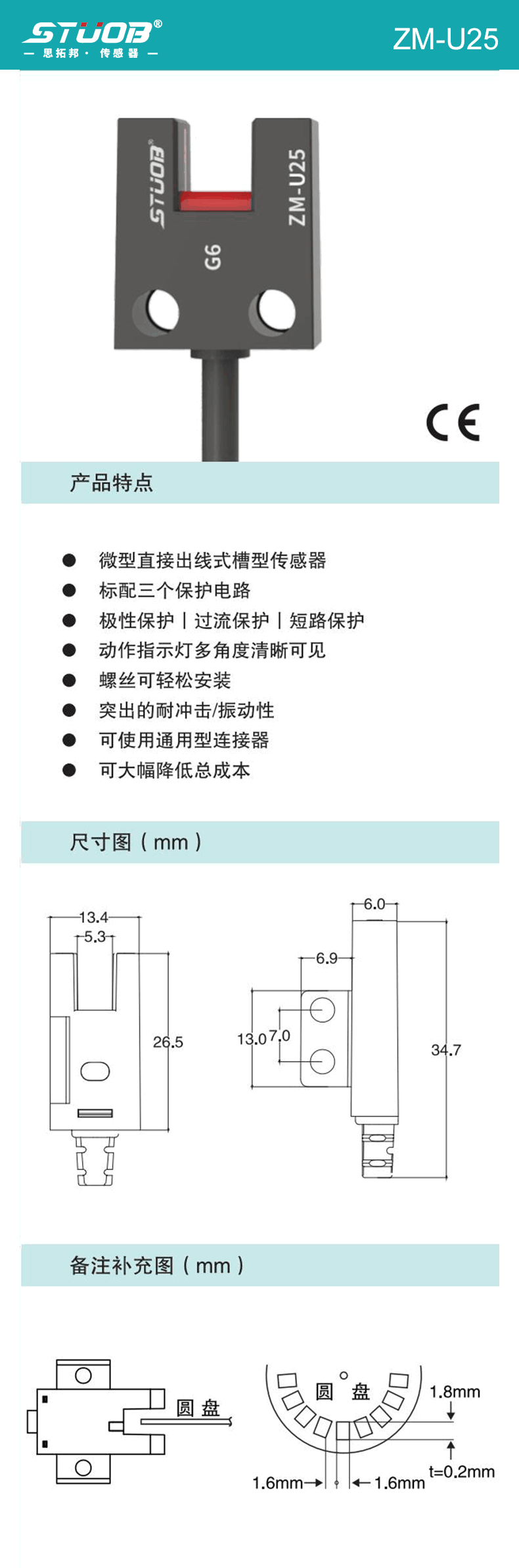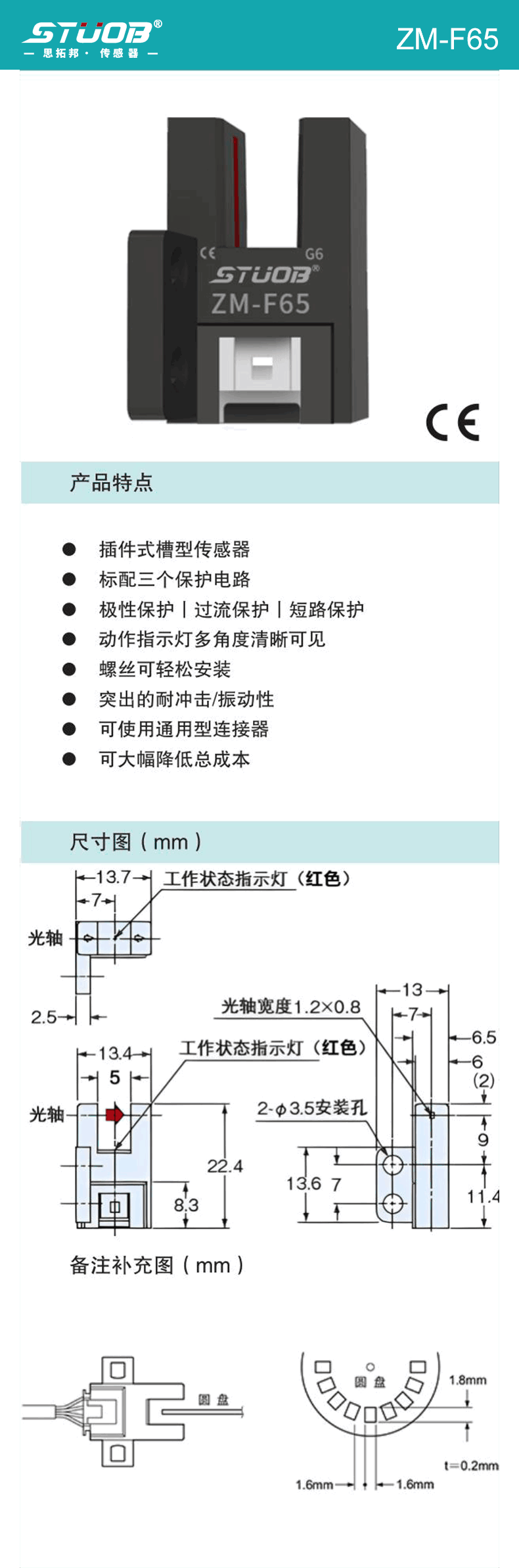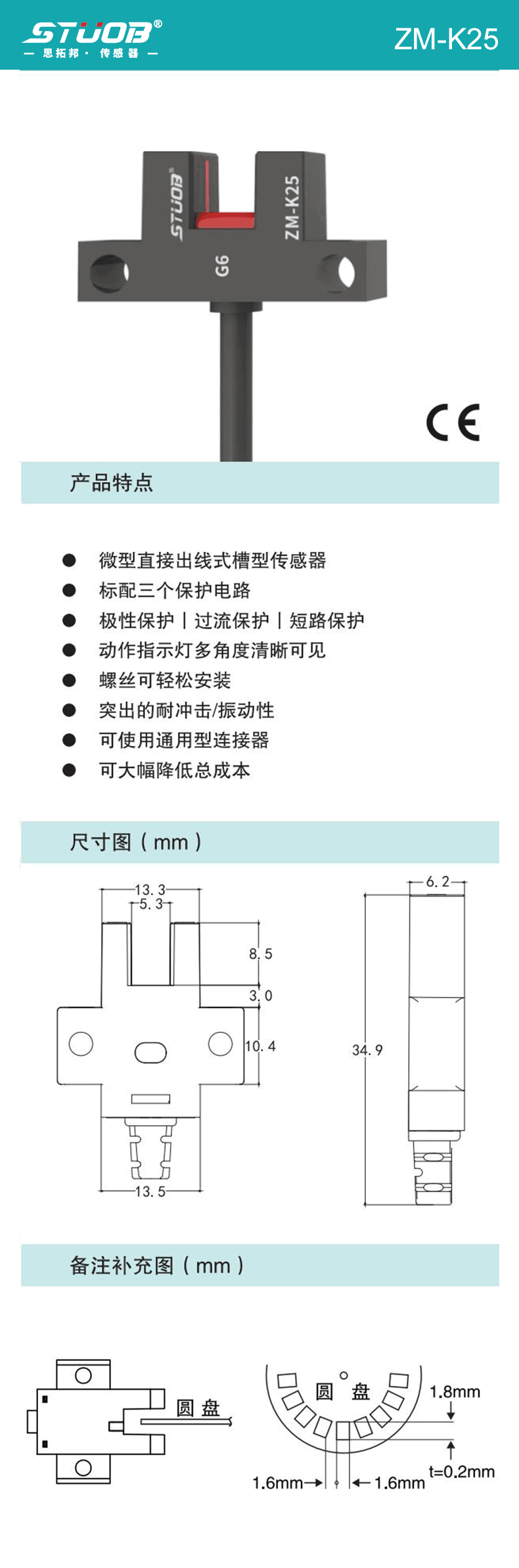 1:微型直接出線式槽型傳感器